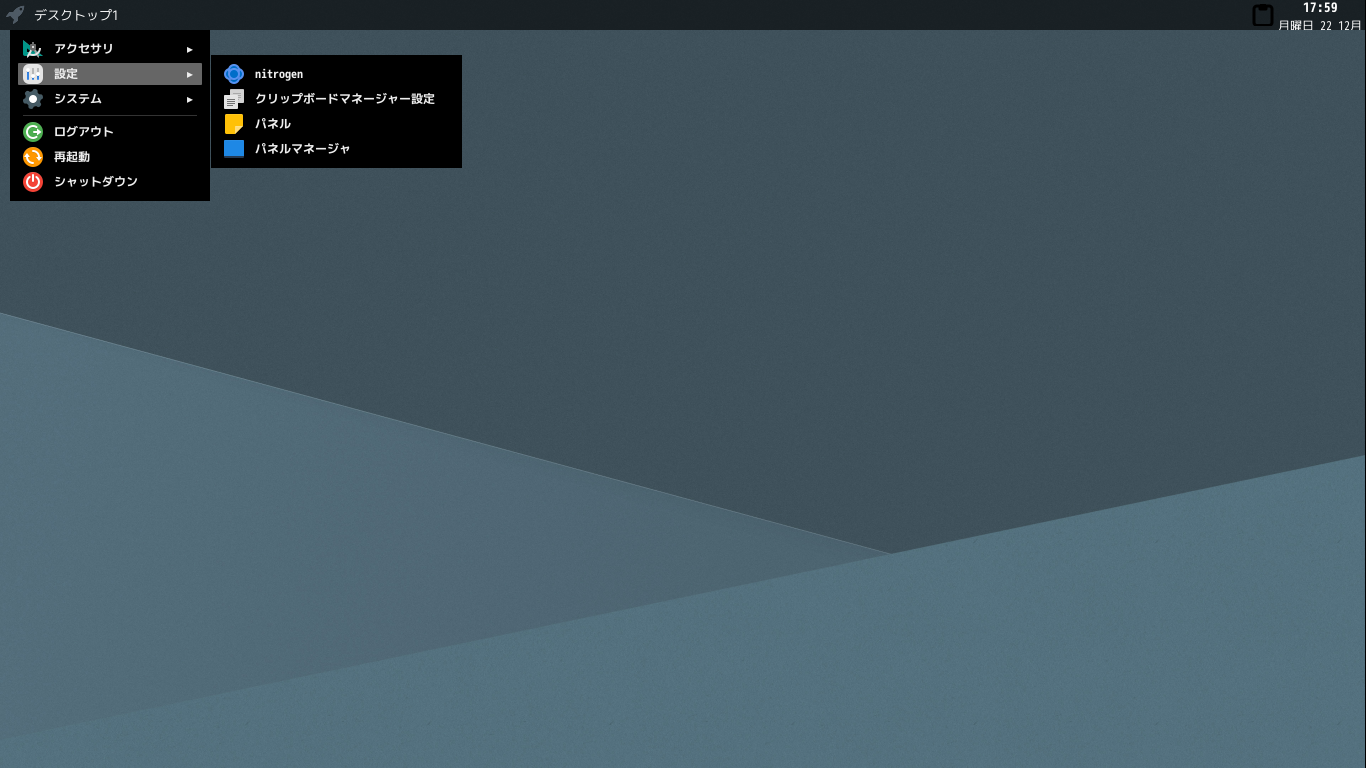 メニュー・パネルは、「jgmenu」「tint2」を設定します。