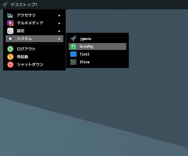 1. 概要 「OctoPkg」は、パッケージ管理(pkg)のグラフィカルフロントエンドです。 基本的な操作については共通事項の「パッケージ管理 OctoPkg」を参照してください。 2. インストール 「OctoPkg」自体は、コマンドでインストールします。 「root」ユーザ権限で。 pkg install -y octopkg 3. 起動 「スタート」→「システム」→「OctoPkg」
