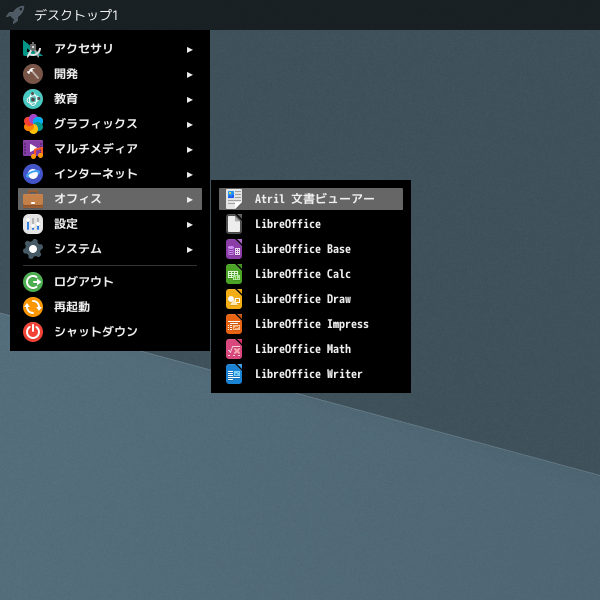 1. 概要 ドキュメントビューアとして、「Atril」を使用します。 2. インストール 「OctoPkg」で、「atril」を検索して、インストールします。 3. 起動 スタート →「オフィス」→「Atril 文書ビューア」