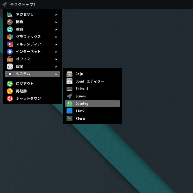 1. 概要 「OctoPkg」は、パッケージ管理(pkg)のグラフィカルフロントエンドです。 基本的な操作については共通事項の「パッケージ管理 OctoPkg」を参照してください。 2. インストール 「OctoPkg」自体は、コマンドでインストールします。 「root」ユーザ権限で。 pkg install -y octopkg 3. 起動 「スタート」→「システム」→「OctoPkg」