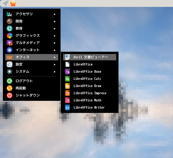 1. 概要 ドキュメントビューアとして、「Atril」を使用します。 2. インストール 「OctoPkg」で、「atril」を検索して、インストールします。 3. 起動 スタート →「オフィス」→「Atril」
