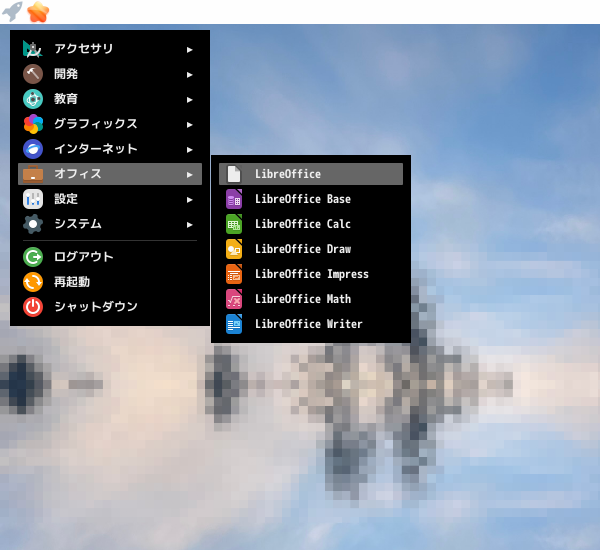 1. 概要 オフィススイートとして、「LibreOffice」を使用します。 2. インストール 「OctoPkg」で、「ja-libreoffice」を検索して、インストールします。 3. 起動 「スタート」→「オフィス」→「LibreOffice」
