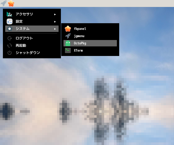 1. 概要 「OctoPkg」は、パッケージ管理(pkg)のグラフィカルフロントエンドです。 基本的な操作については共通事項の「パッケージ管理 OctoPkg」を参照してください。 2. インストール 「root」ユーザ権限で。 pkg install -y octopkg 3. 起動 「スタート」→「システム」→「OctoPkg」