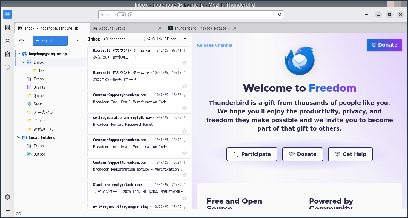 PekWM - FreeBSD 14.4 - メールクライアント Thunderbird