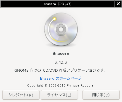 「Brasero」は、光学ディスク(CD・DVD)のライティングソフトです。