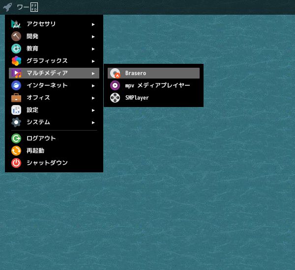 1. 概要 「Brasero」は、光学ディスク(CD・DVD)のライティングソフトです。 2. インストール 「OctoPkg」で、「brasero」を検索して、インストールします。 インストール直後は、起動できないことがあります。 そういうときは、一度、ログインしなおします。 3. 起動 「スタート」→「マルチメディア」→「Brasero」