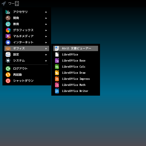 1. 概要 ドキュメントビューアとして、「Atril」を使用します。 2. インストール 「OctoPkg」で、「atril」を検索して、インストールします。 3. 起動 スタート →「オフィス」→「Atril」