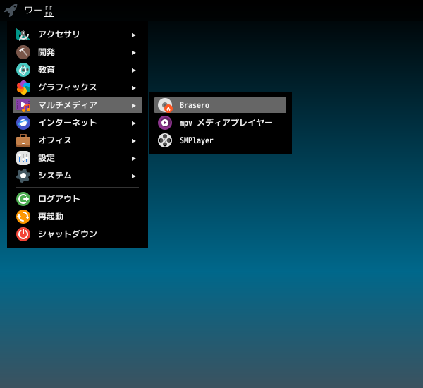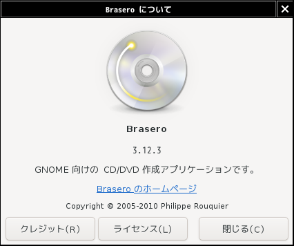 1. 概要 「Brasero」は、光学ディスク(CD・DVD)のライティングソフトです。 2. インストール 「OctoPkg」で、「brasero」を検索して、インストールします。 インストール直後は、起動できないことがあります。 そういうときは、一度、ログインしなおします。 3. 起動 「スタート」→「マルチメディア」→「Brasero」