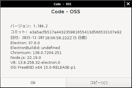 Window Maker - FreeBSD 15.0 - 開発環境 Visual Studio Code