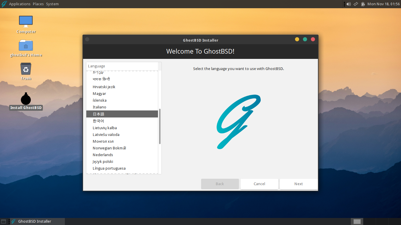 GhostBSD - 24.10.1 - 概要・共通事項 - インストール - 起動
