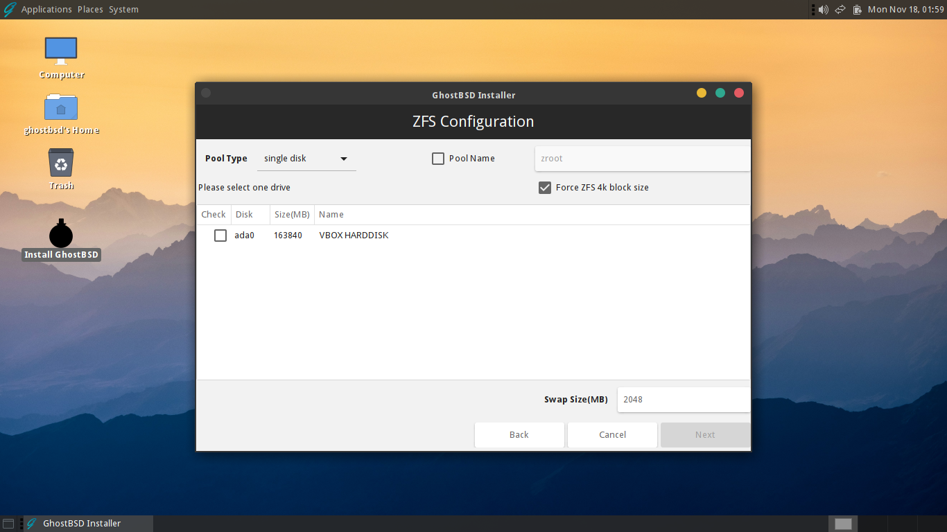 「Install GhostBSD」を右クリックして
