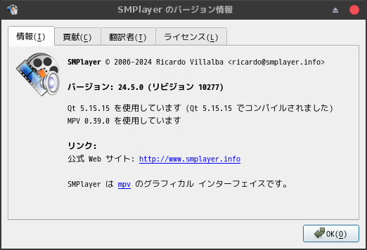 起動直後の状態です。 ビデオコンテンツを再生してみました。 快適に再生できます。 2024年11月20日の時点で、下記のバージョンでした。 操作方法は、特に説明しなくても操作できるような簡単な操作です。 |