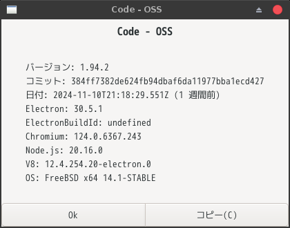 GhostBSD - 24.10.1 - XFCE - 開発環境 Visual Studio Code