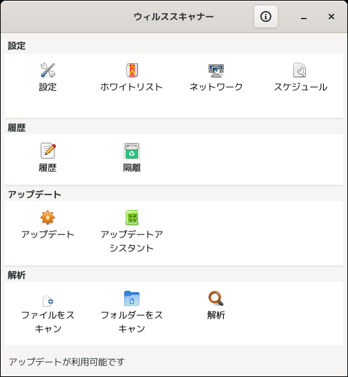 操作については「アンチウイルスソフト ClamTk」を参照してください。