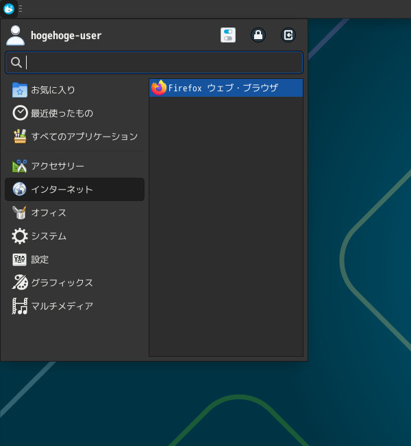 1. 概要 ブラウザとして、デフォルトで「Firefox」がインストールされていますが、日本語化されていません。 日本語化して使用します。 日本語化モジュールは、インストールされていましたので、設定で切り替えるだけです。 日本語化の手順に関しては、「ブラウザ - Firefox - 日本語化」をご参照ください。 2. 起動 「スタート」→「インターネット」→「Firefox」