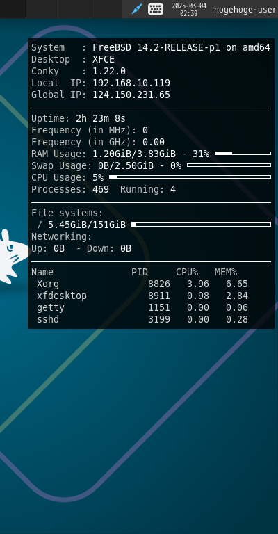 GhostBSD - 25.01 - XFCE - タスクマネージャ Conky