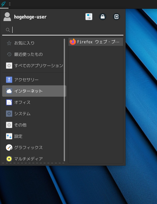 1. 概要 ブラウザとして、デフォルトで「Firefox」がインストールされていますが、日本語化されていません。 日本語化して使用します。 日本語化モジュールは、インストールされていましたので、設定で切り替えるだけです。 日本語化の手順に関しては、「ブラウザ - Firefox - 日本語化」をご参照ください。 2. 起動 「スタート」→「インターネット」→「Firefox」