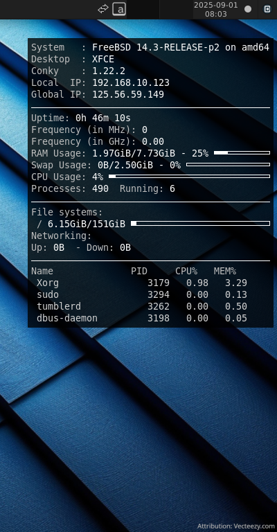 詳細は、「Conky - Wikipedia」をご参照ください。