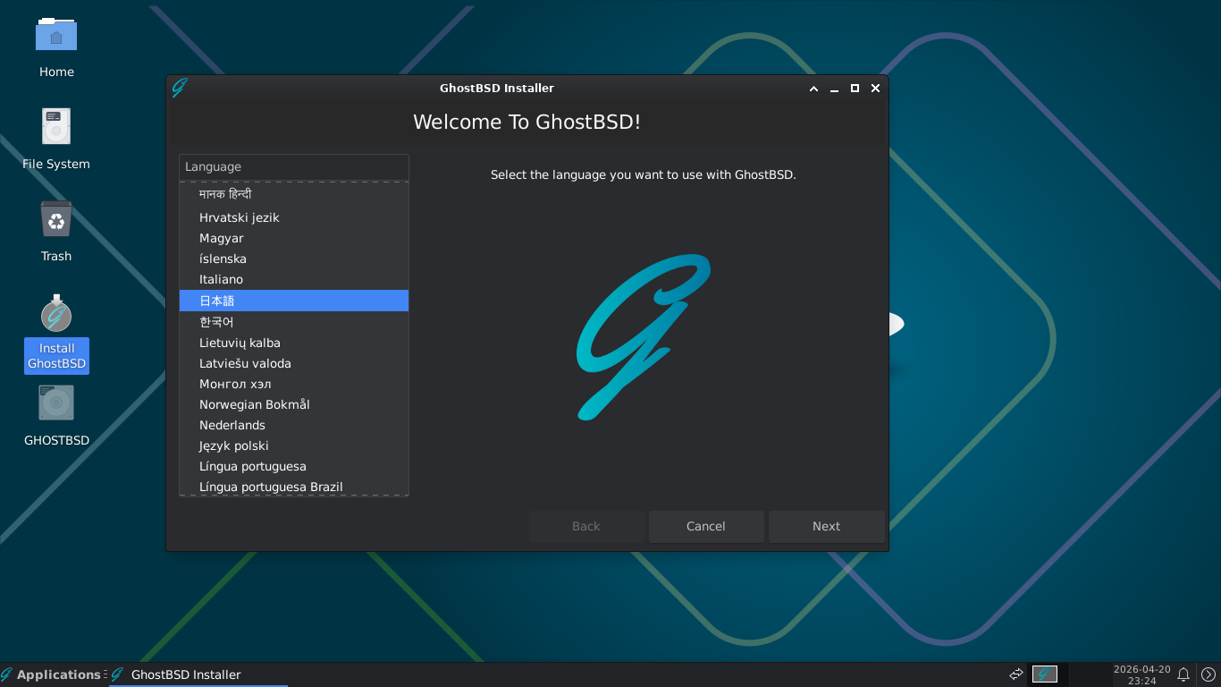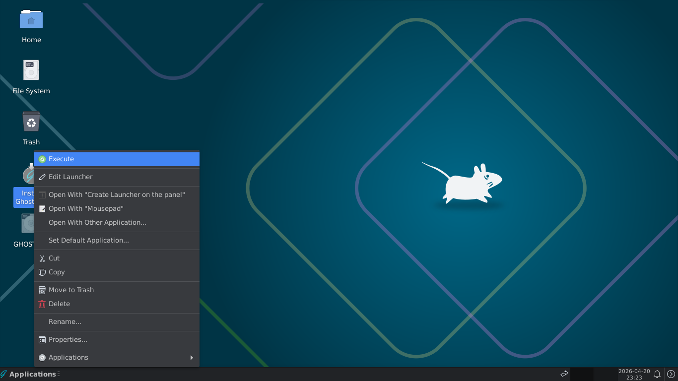 1. 概要 インストール手順の詳細は、「GhostBSD - 26.01 - 共通事項」に記載しておりますので、そちらをご参照ください。 2. インストール 参照ページと大きく違うのが、インストーラ起動時の画面です。 インストーラを右クリックして 「Execute」