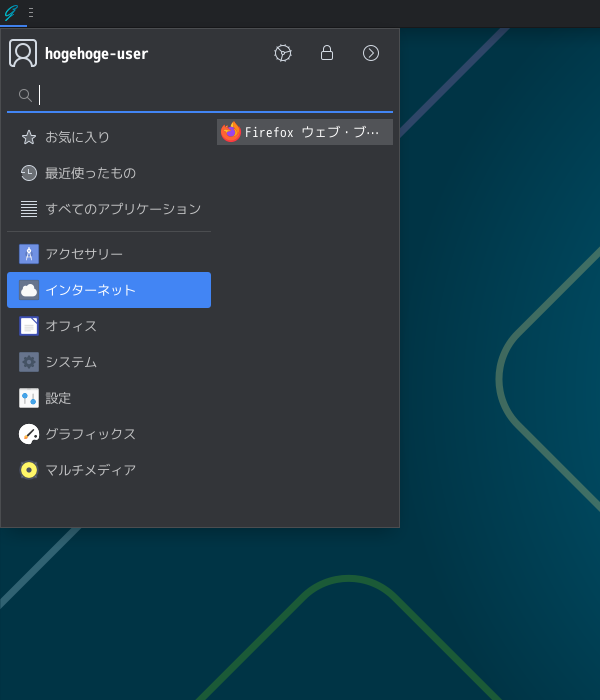 1. 概要 ブラウザとして、デフォルトで「Firefox」がインストールされていますが、日本語化されていません。 日本語化して使用します。 日本語化モジュールは、インストールされていましたので、設定で切り替えるだけです。 日本語化の手順に関しては、「ブラウザ - Firefox - 日本語化」をご参照ください。 2. 起動 「スタート」→「インターネット」→「Firefox」