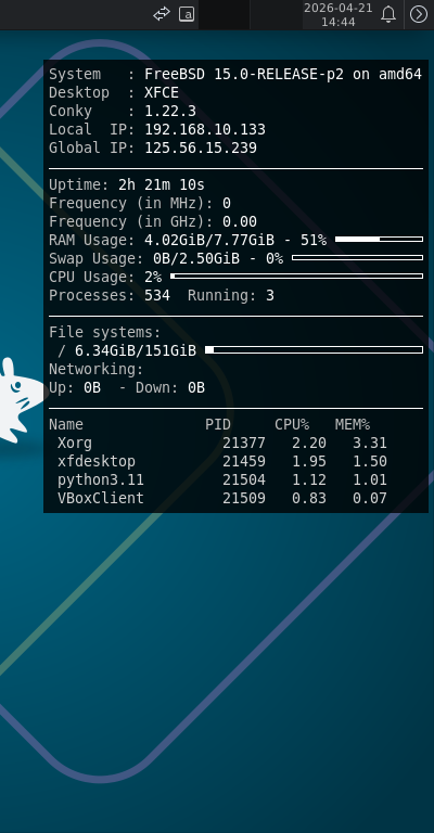 詳細は、「Conky - Wikipedia」をご参照ください。