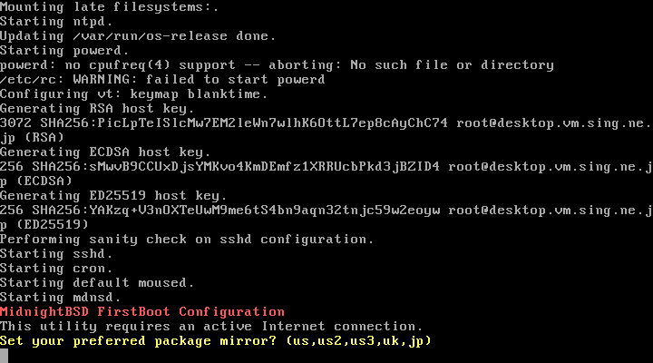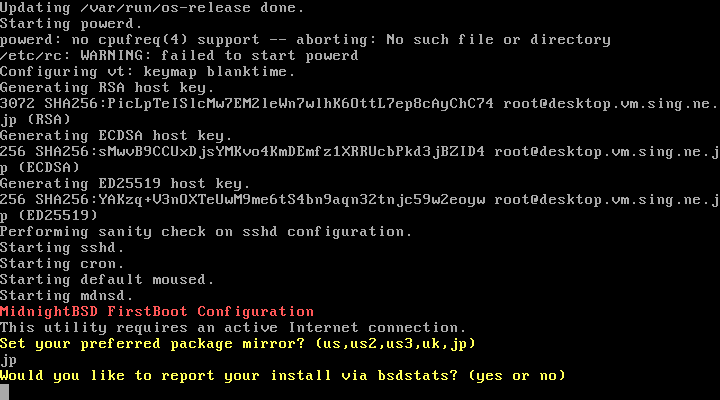 再起動後のここからが、「MidnightBSD」独自の設定になります。