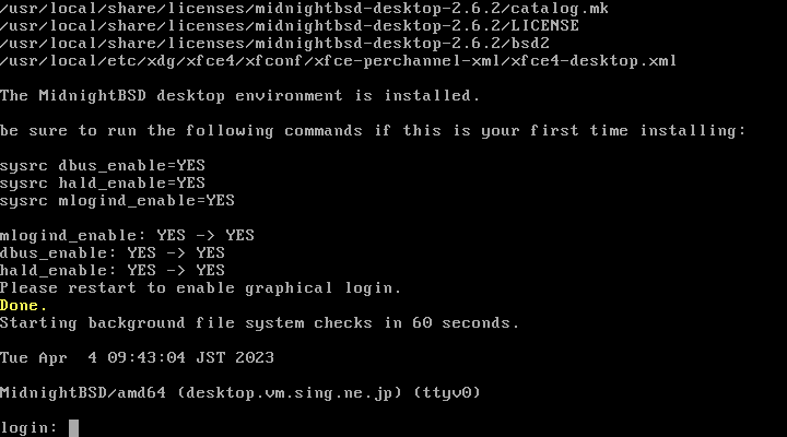 MidnightBSD - 3.0.0 - 共通事項 - 再起動後の設定