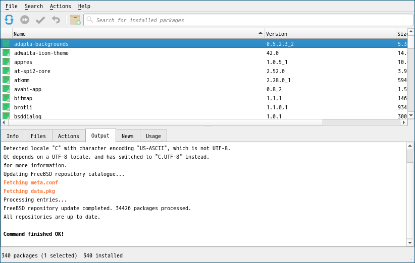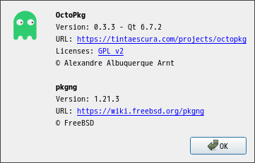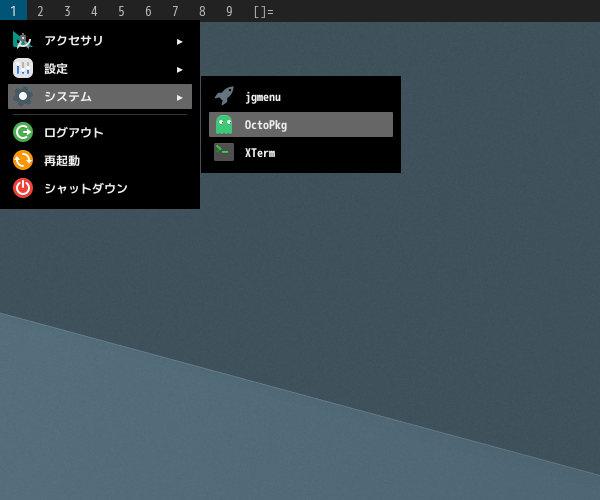 1. 概要 「OctoPkg」は、パッケージ管理(pkg)のグラフィカルフロントエンドです。 基本的な操作については共通事項の「パッケージ管理 OctoPkg」を参照してください。 2. インストール ここまでは、コマンドでインストールしなければならない。 「root」ユーザ権限で。 pkg install -y octopkg 3. 起動 「スタート」→「システムツール」→「OctoPkg」