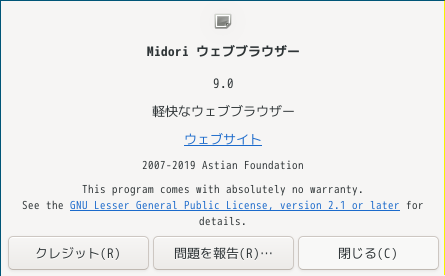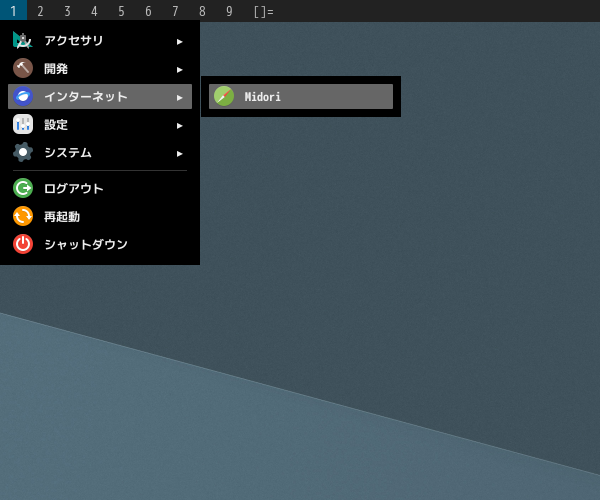 1. 概要 ブラウザとして、軽いので、「Midori」を使用します。 2. インストール 「OctoPkg」で、「midori」を検索して、インストールします。 3. 起動 「スタート」→「インターネット」→「Midori」