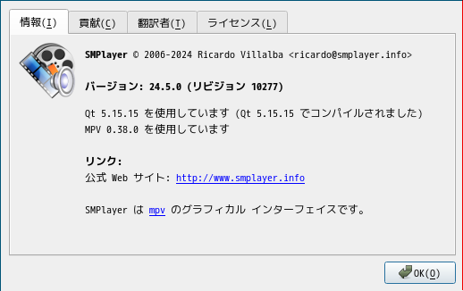 1. 概要 マルチメディアプレイヤーとして、「SMPayer」を使用します。 2. インストール 「OctoPkg」で、「smplayer」を検索して、インストールします。 3. 起動 「スタート」→「サウンドとビデオ」→「SMPayer」