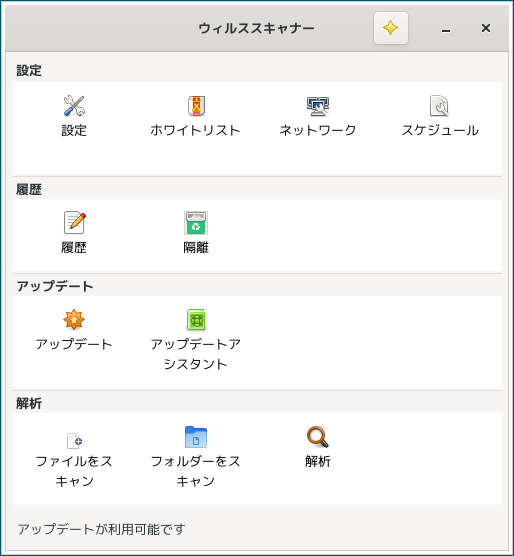 操作については「アンチウイルスソフト ClamTk」を参照してください。