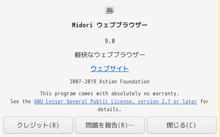 1. 概要 ブラウザとして、軽いので、「Midori」を使用します。 2. インストール 「OctoPkg」で、「midori」を検索して、インストールします。 3. 起動 「スタート」→「インターネット」→「Midori」