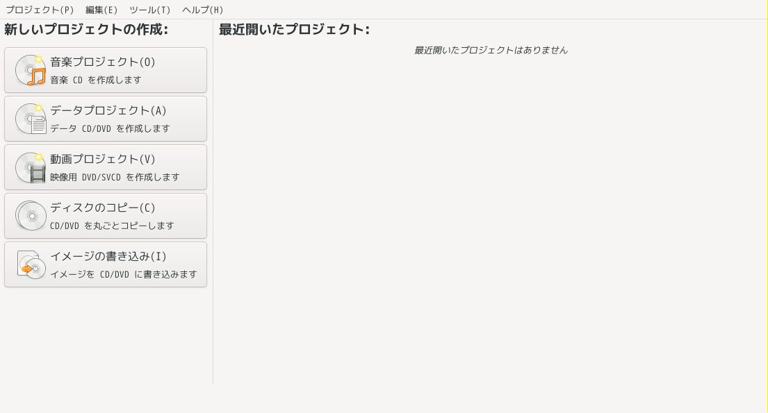 「Brasero」は、光学ディスク(CD・DVD)のライティングソフトです。