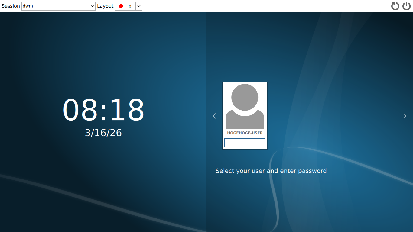 ただし、「dwm」は、同時に「awesome」がインストールされるようで、デフォルトでは「awesome」へログインしようとします。