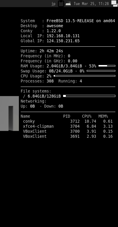 awesome - FreeBSD 13.5 RELEASE - タスクマネージャ Conky