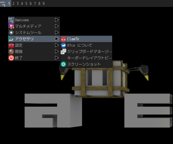 「デスクトップ上右クリック」→「アクセサリ」→「ClamTk」