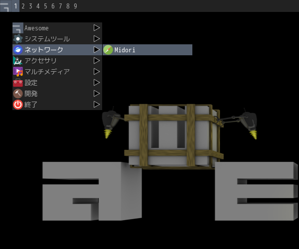 1. 概要 ブラウザとして、軽いので、「Midori」をインストールして、使用します。 2. インストール 「OctoPkg」で、「midori」を検索してインストールします。 インストール後、mod+Ctrl+r で、メニューを更新します。 3. 起動 「デスクトップ上右クリック」→「ネットワーク」→「Midori」