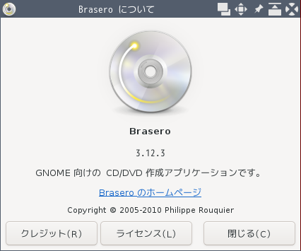「Brasero」は、光学ディスク(CD・DVD)のライティングソフトです。