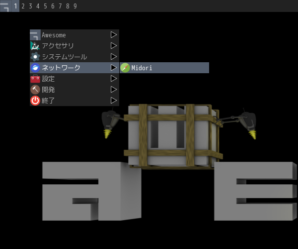 1. 概要 ブラウザとして、軽いので、「Midori」をインストールして、使用します。 2. インストール 「OctoPkg」で、「midori」を検索してインストールします。 インストール後、mod+Ctrl+r で、メニューを更新します。 3. 起動 「デスクトップ上右クリック」→「ネットワーク」→「Midori」