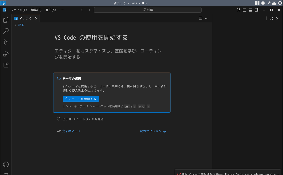日本語化後、再起動直後の状態です。 2025年12月17日の時点で、下記のバージョンでした。 「Visual Studio Code」の操作等については「統合開発環境 Visual Studio Code」をご参照ください。 |