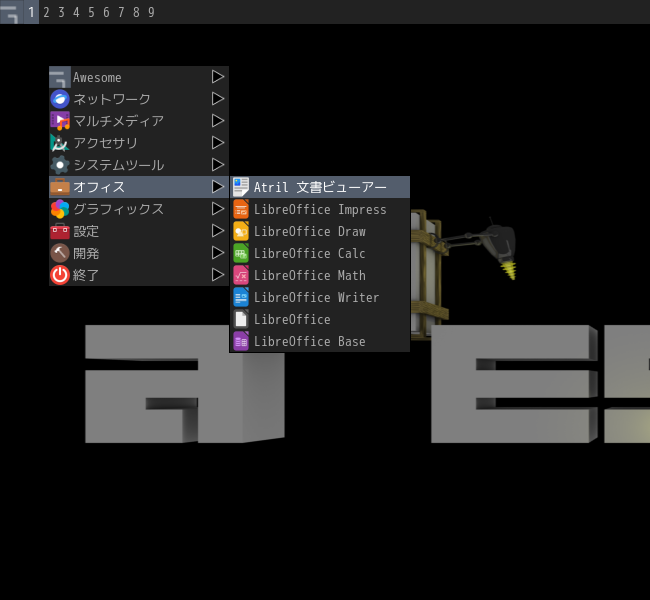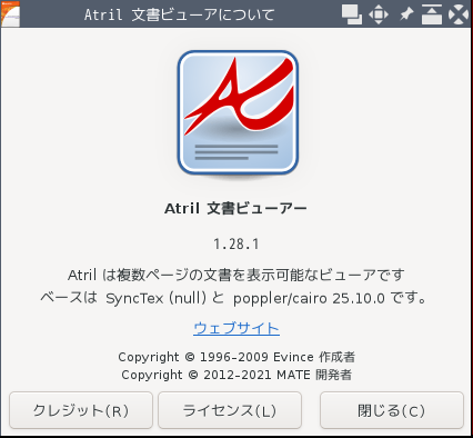 1. 概要 ドキュメントビューアとして。「Atril」を使用します。 2. インストール 「OctoPkg」で、「atril」を検索して、インストールします。 インストール後、mod+Ctrl+r で、メニューを更新します。 3. 起動 「デスクトップ上右クリック」→「オフィス」→「Artil ドキュメントビューア」