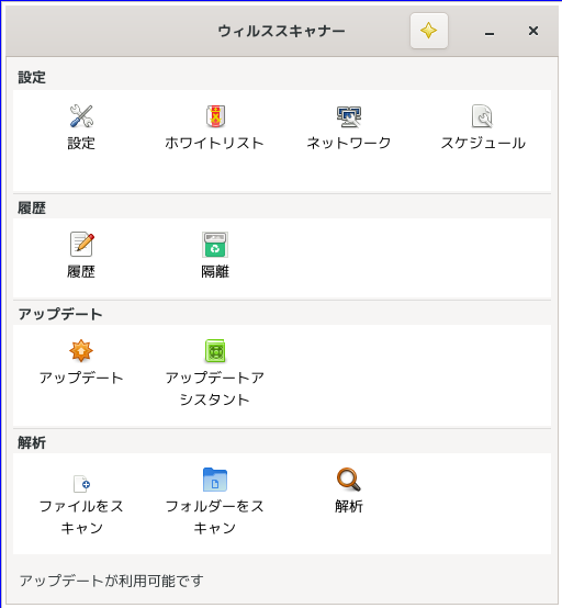 操作方法等に関しては、「デスクトップ環境構築 - 共通事項 - アンチウイルスソフト ClamTk」をご参照ください。