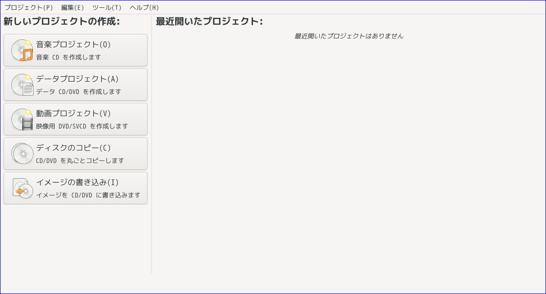 光ディスク(CD・DVD)のライティングソフトとして、「Brasero」を使用します。