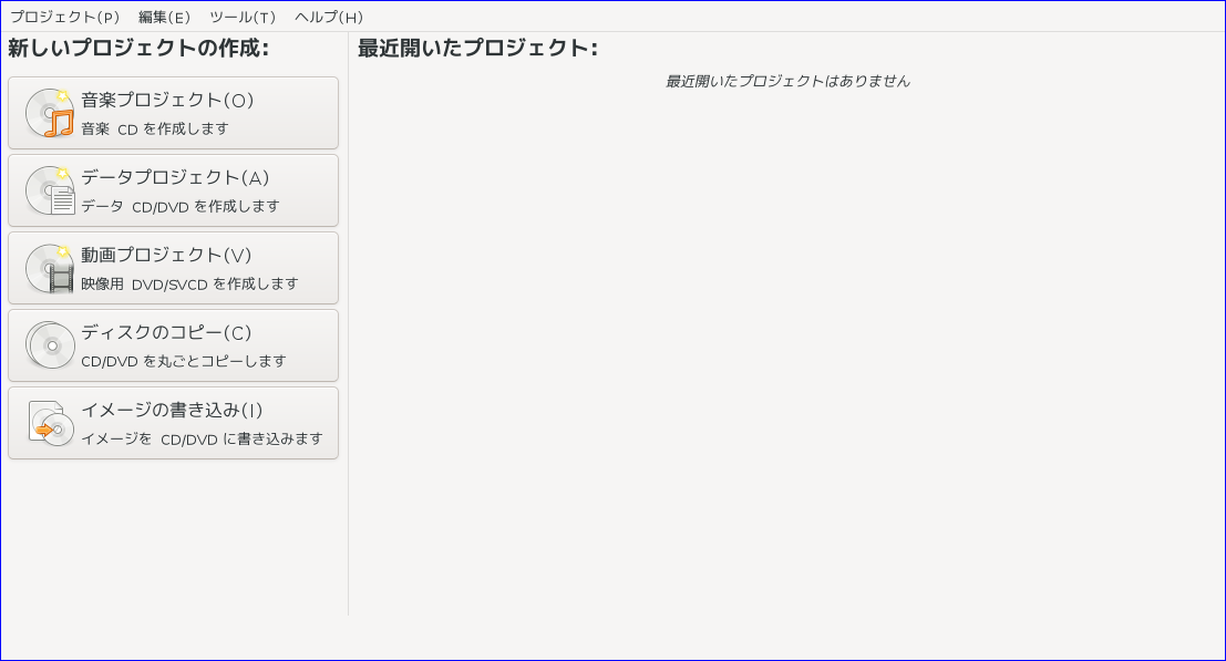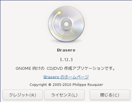 光ディスク(CD・DVD)のライティングソフトとして、「Brasero」を使用します。