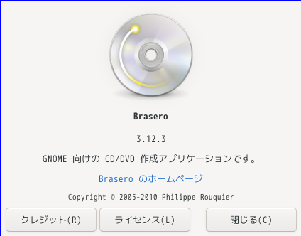 光ディスク(CD・DVD)のライティングソフトとして、「Brasero」を使用します。