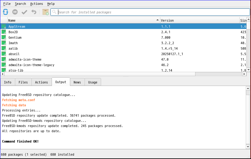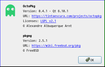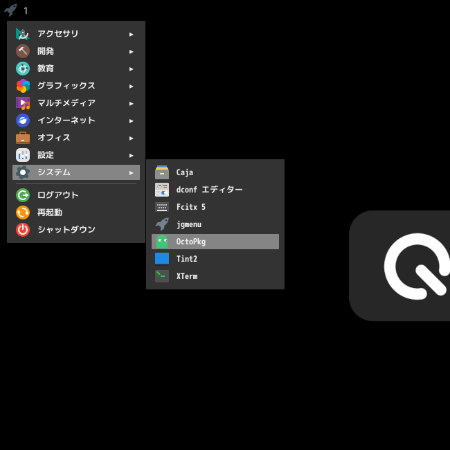 1. 概要 「OctoPkg」は、「pkg」コマンドのフロントエンドです。 2. インストール 「OctoPkg」自体は、コマンドでインストールします。 「root」ユーザ権限で。 pkg install -y octopkg 3. 起動 「スタート」→「システム」→「OctoPkg」