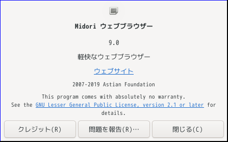 1. 概要 ブラウザとして、「Midori」を使用します。 2. インストール 「OctoPkg」で、「midori」を検索して、インストールします。 3. 起動 「スタート」→「インターネット」→「Midori」