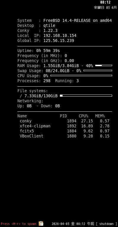 詳細は、「Conky - Wikipedia」をご参照ください。