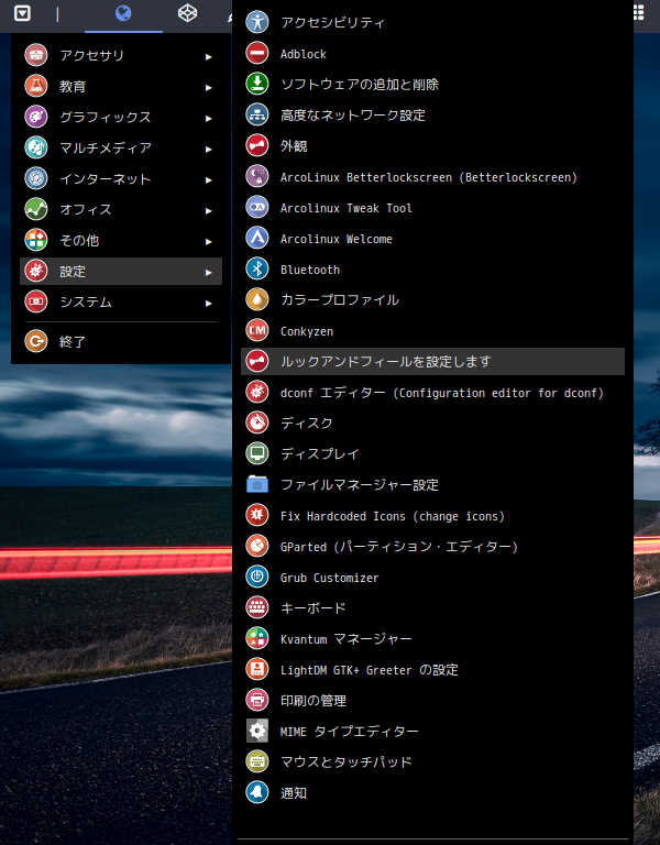 「lxappearance」をメニューへ組み込む方法については、「デスクトップ環境 - 共通事項 - フォント」をご参照ください。