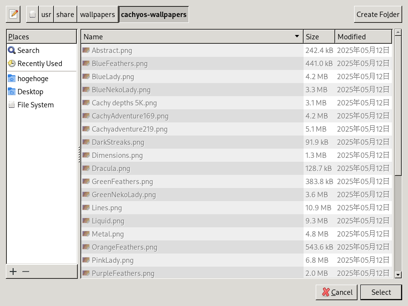 「CachyOS」は、壁紙は、下記のディレクトリに存在します。